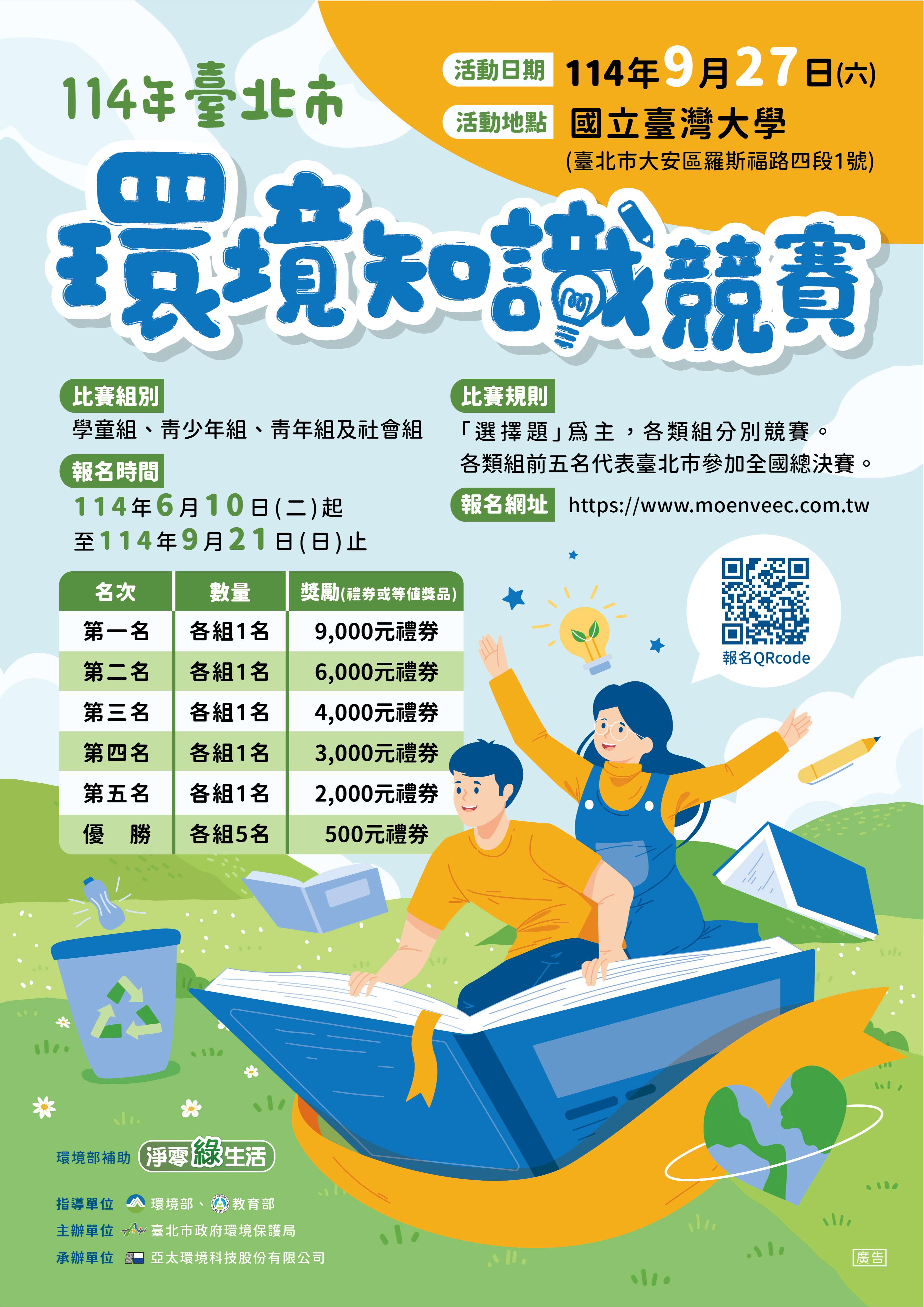 五、檢附114年環境知識競賽須知、114年臺北市環境知識競賽 須知及海報各1份。